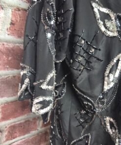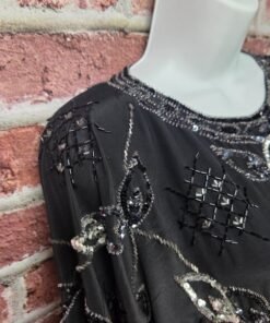 Argenti Silk Beaded Top S | Vintage Black Sequin Scallop Hem Party Eveningwear