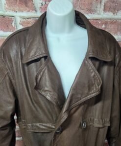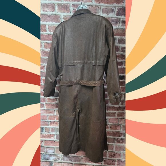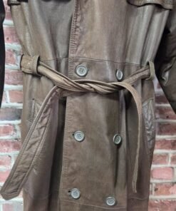 Make a bold yet refined statement with this vintage Pelle Cuir leather coat from the 1980s. Featuring a double-breasted front, belted waist, and longline silhouette, it’s a timeless piece that blends retro menswear with elevated outerwear. Crafted from 100% genuine leather and fully lined for comfort, this coat is built for both style and substance.