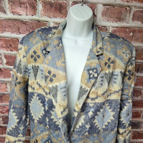 Streetwear Aztec blazer, vintage 80s Southwestern jacket, women’s small blazer, retro padded shoulder jacket, boho chic Aztec jacket, made in USA vintage blazer