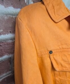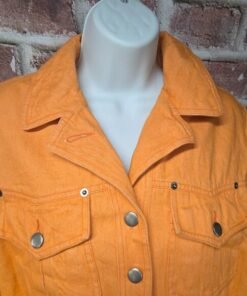 Bring bold 90s energy with this Together! vintage denim utility jacket, crafted in 100% cotton with side and chest pockets for both style and function. The rare orange wash makes it a true statement piece for retro streetwear and Y2K-inspired fashion.
