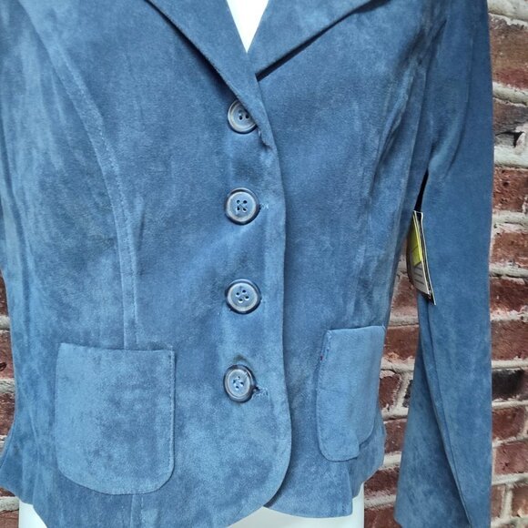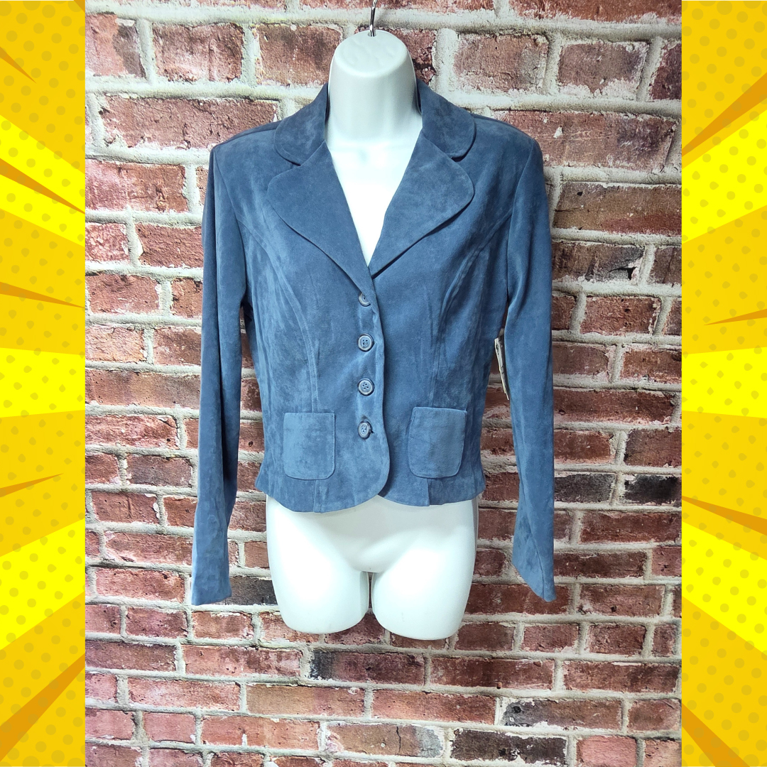 Add a touch of vintage sophistication with this Splurge by ISB cropped blue blazer. Featuring a 3-button front, padded shoulders, and two front pockets, it’s the perfect mix of structured style and retro charm. Ideal for pairing with high-waisted pants or skirts for a polished, statement look.
