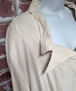 Step into timeless style with this vintage WR II midi dress, crafted in the USA with a soft cream tone and retro silhouette. Featuring padded shoulders, long sleeves, and functional waist pockets, it blends cottagecore sweetness with tailored vintage structure — perfect for heritage fashion lovers and coquette-inspired wardrobes.